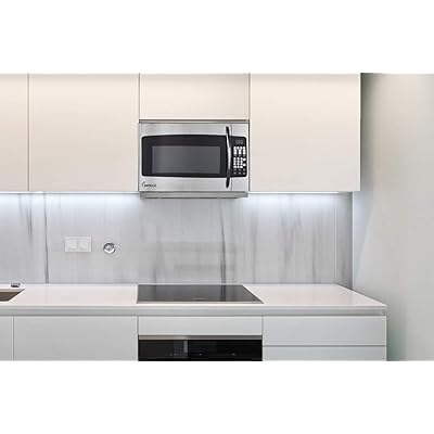 These microwaves usually fit between adjoining wall cabinets and below a specialty upper cabinet that hides the vent connections and electrical outlet.